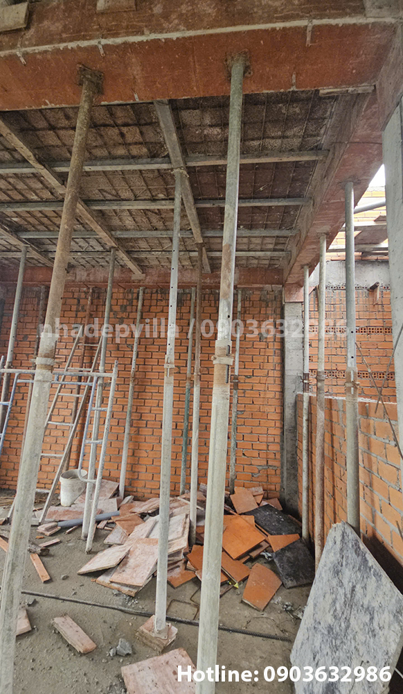 Hệ giàn giáo, chống sàn được lắp đặt đầy đủ, chắc chắn